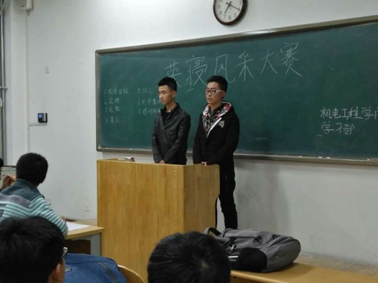 5月19日晚七点,申慱sunbet娱乐在9号教学楼405室举办英语寝室风采大赛。共有机电工程系学院2015级学生会10位部长作为评委和2016级80名同学参加本次大赛。
