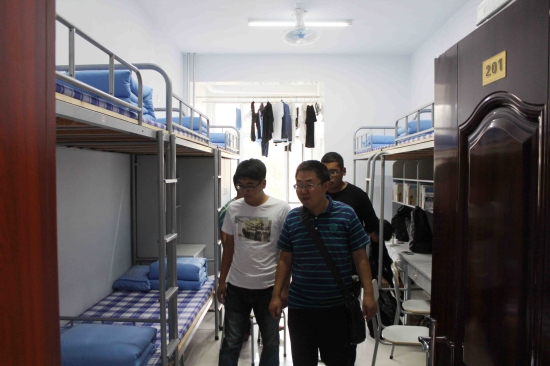军训虽然结束了,但同学们的内务卫生标准仍不能降低,为此,纪老师和宋老师对同学们的公寓进行了突击检查。检查开始前,老师们在所有的公寓中随机进行抽查,并对宿舍卫生、水电的使用情况、大功率电器,以及管制刀具进行检查。在此次检查过程中,两位辅导员老师对表现好的宿舍提出了表扬,对表现不好的宿舍也提出了合理化的建议。检查结束时两位老师对新生宿舍的整体面貌表示十分满意,并希望同学们再接再厉。