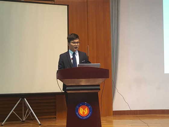 6月26日下午3点,申慱sunbet娱乐在学苑会堂第二报告厅参加滨州学院学生会2017-2018学年工作汇报,我院学生会副主席陈笑天上台答辩。