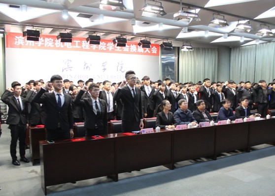 12月4日晚上7点,我院于滨州学院学苑会堂200人会议室召开学生会换届大会,参加此次会议的有我院党总支副书记王丕琢老师、团总支书记宋立军老师、团总支副书记靳雪银老师、团总支副书记牛得学老师、副科级辅导员纪建茂老师、团总支副书记姚邵帅同学、2017届各部门干部以及2018届全体学生会成员。