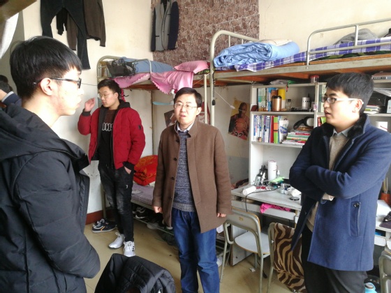 为打造良好的学习氛围、养成健康的生活习惯、建设宿舍文化,2月25日下午2点30,我院于考研宿舍楼对宿舍卫生进行检查。此次检查由宋立军老师、纪建茂老师组织开展。