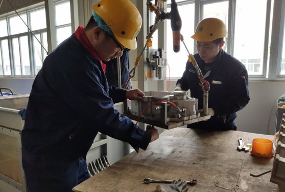 学生进驻公司后,企业将学生分配到不同的工作岗位,有设备的装配,调试,有零部件与物料的仓储管理,还有生产流程的检查等多个部门。在听取企业基本情况介绍和安全基础知识后,他们奔赴自己的工作岗位,与一线职工开展交流和工艺探讨。学生们认真对待自己的工作岗位,珍惜学习的机会。