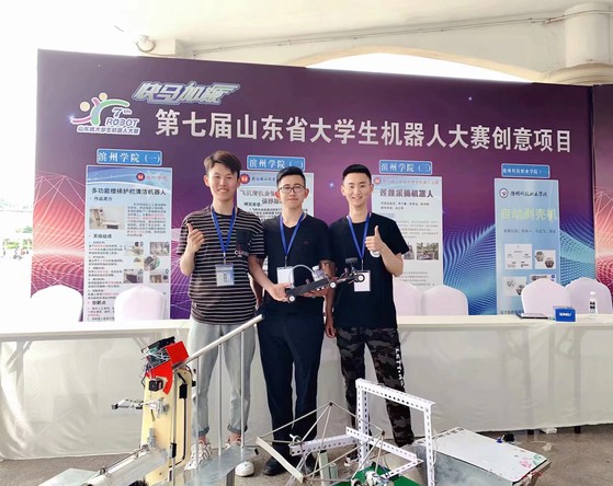 比赛前夕,我院参赛同学积极备赛,利用课余时间研发作品,改良作品,完善作品,为此次大赛做了充分准备。5月16日,同学们出发前往邹城,在邹城的这几天里,同学们也是不敢怠慢,他们不断的调试机器,找出机器的不足,然后相应的改进,使机器更加完美化。终于,皇天不负有心人,同学们取得了优异的成绩,其中,张义壮等同学的“风驰电掣机器人”荣获推荐项目“快马加鞭”组一等奖,付琳、苏洲、陈旭的“ 多功能楼梯护栏清洁机器人”,李子豪、李思宏、陈宇晗的“莲蓬采摘机器人”和孙吉昌、闫睿、李岩飞的“飞机机身智能清洁保养除冰装置”荣获创意展示项目组二等奖。
