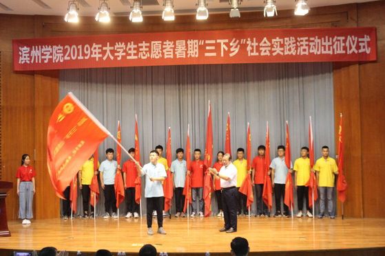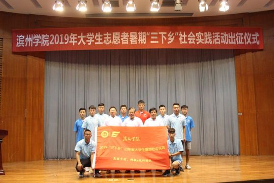 为聚焦学习宣传习近平新时代中国特色社会主义思想、投身助力实施乡村振兴战略六大行动,7月12日下午,申慱sunbet娱乐于千人礼堂门口及500人礼堂参加滨州学院2019年大学生志愿者暑期“三下乡”社会实践活动出征仪式。我院党总支书记张永胜、党总支副书记王丕琢、辅导员宋立军老师及我院“美丽乡村,科教e 先行”团队全体成员参加了此次出征仪式。