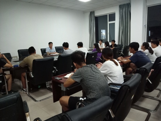 会议伊始,纪建茂老师简单介绍了2019级各班主任助理所负责的工作。接着,纪建茂老师就迎新工作的时间安排进行了详细部署,并强调各班主任助理要组织好接下来的迎新工作。