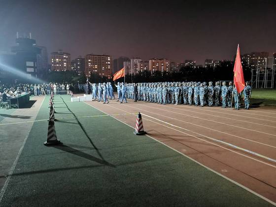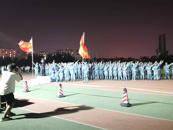 为彰显2019级新生的风采,提高学生的凝聚力,我院于9月9日晚七点半在田径场参加军歌比赛,此次活动由我院19级全体新生参加。