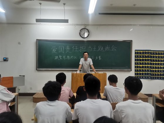 此次班会讲到了新时代爱国主义的丰富内涵、各项事业的领导核心、新时代“五四精神”和爱国主义、中美贸易战和香港问题、如何志存高远,脚踏实地学好知识、开展丰富多彩的主题学习活动。要求同学们具备高度的历史责任感和祖国利益高于一切的思想境界,通过讲解中美贸易战和香港问题,教育同学们理性爱国爱港。通过讲解爱国知识和历史责任感,要求同学们在当前学校转型发展,申硕和航空内涵建设的重要时期,脚踏实地搞好自己的业务学习,遵守校规校纪,共同维护好学校和谐发展的良好局面。介绍了我院开展关于国庆节的活动,例如歌唱比赛,书法大赛等活动,鼓励同学们积极参加。最后,各班班主任安排了交流讨论环节组织同学们就“爱国•责任•担当”分专题讨论,确保教育落地落实。