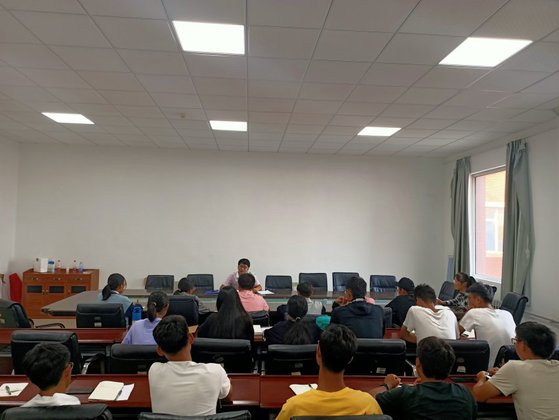首先,辅导员纪建茂老师向临时负责人就各项国庆节放假注意事项进行工作部署以及回校后活动安排。例如爱国演讲、歌唱祖国、观看阅兵仪式并交流学习、参观校史馆等主题教育活动。要求各班临时负责人安排好学院各项工作,统筹谋划,明确分工,督促各项工作的完成。随后,辅导员纪建茂老师强调了临时负责人在假前要进行本班宿舍安全隐患排查工作,监督同学们离开宿舍前一定要关锁好门窗,切断电源,防止意外事故发生。要求临时负责人提醒同学们回家途中注意安全,并按期返校。最后,辅导员纪建茂老师对2019级临时负责人任职以来,各方面的工作进行了总结,并对临时负责人工作的积极性表示赞扬。