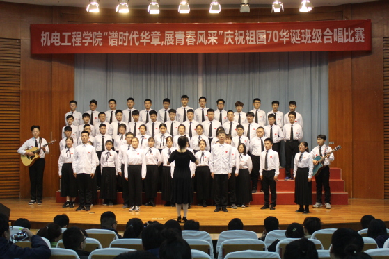 此次比赛共有9支代表队,比赛顺序由抽签决定,由17级合唱的《中国军魂》正式拉开了比赛帷幕,这支由学生党员、入党积极分子、主要学生干部组成的代表队,以自信昂扬的精神面貌和铿锵有力的高亢歌声展现了新时代大学生的风华正茂。接下来是18机械本1-2班带来的《国家》,开头一段饱含深情的诗朗诵在萨克斯独奏《我和我的祖国》的配乐下,将我们的小家和大国紧紧联系在一起,表达了每个中华儿女对祖国母亲的无比热爱,他们手中挥动的五星红旗和深情动听的嘹亮歌声把现场气氛推向高潮。随后《大中国》、《精忠报国》、《歌唱祖国》、《团结就是力量》、《我爱你中国》等脍炙人口的歌曲在礼堂中轮番上演,激情澎湃,振奋人心。最后经过微信公众号现场大众评审投票,18机电专1和18机电专2《我爱你中国》、19飞制本1和19飞设本1《歌唱祖国》荣获比赛一等奖,17级代表队《中国军魂》、18机械本1和18机械本2《国家》、19车辆本1和19机电专1《精忠报国》荣获比赛二等奖,19机械本2《我的中国心》、19机械本1《大中国》、18机械本3和18机械本4《团结就是力量》、18车辆本1和18飞制本1《歌唱祖国》荣获比赛三等奖。