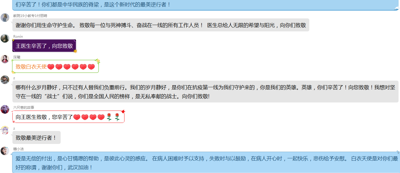 与英雄的对话,让师生们深刻地体会到:这世上没有从天而降的英雄,只有挺身而出的凡人,哪有什么岁月静好,不过是有人替你负重前行。他们在深受教育的同时,纷纷通过视频连线致敬英雄,表达了对逆行抗疫英雄的感激之情。学生党员刘本虎说道:“您将生死置之度外,决心打赢这场硬仗的时候,您就已经成为了我们的英雄,您承受着巨大的心理压力和高强度的工作负荷,却毅然坚守岗位,让我深深震撼、深深感动,因为你们的奋战,才有我们的心安,真心谢谢您,向您致敬”。申慱sunbet娱乐学生党支部向王艳贞送上了带有全体党员点赞照片和电子签名的致敬卡片,向最美逆行者致以了崇高的敬意。
