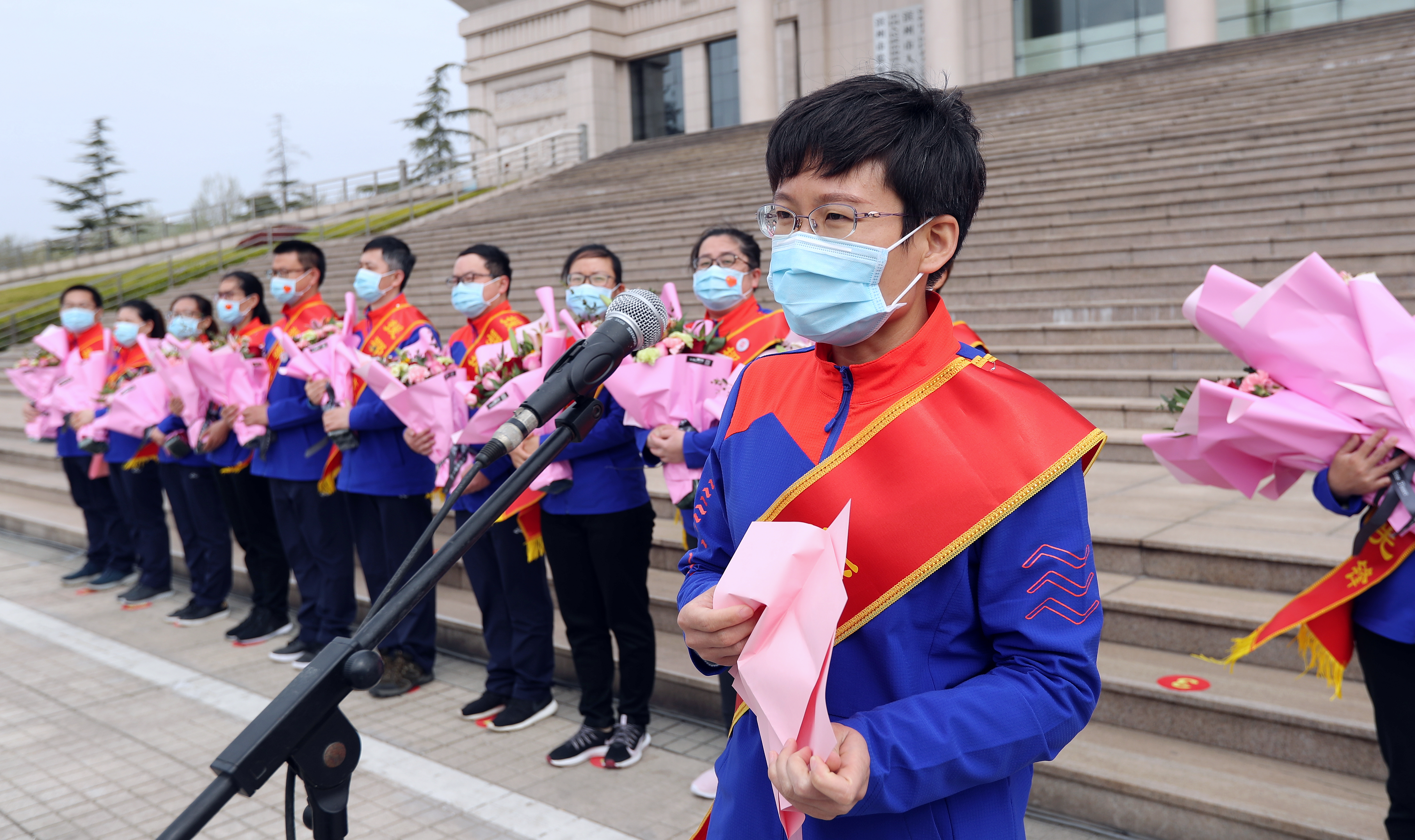 鲁迅先生说过,“我们自古以来就有埋头苦干的人,有拼命硬干的人,有为民请命的人,有舍身求法的人”。山东省第八批援鄂医疗队队员、滨州市第四批援鄂医疗队队员、阳信县人民医院呼吸内科副主任王艳贞正是这样的人之一。在这场没有硝烟的战争中,她放弃休假、团圆,选择与病魔斗争、与死神抗衡,毅然决然地逆行,奔赴武汉。除了完成日常医疗护理工作,她和同事们还把汉阳方舱医院布置成了一个温馨的家,在墙上贴满鼓励的话语、漫画、千纸鹤、手绘风筝等,带领患者一起做呼吸操、八段锦。4月1日,她随滨州市第四批援鄂医疗队平安凯旋,在欢迎仪式上作为代表发言。她用生命护佑生命,用温暖传递温暖,她是勇敢的战士,是真正的英雄。