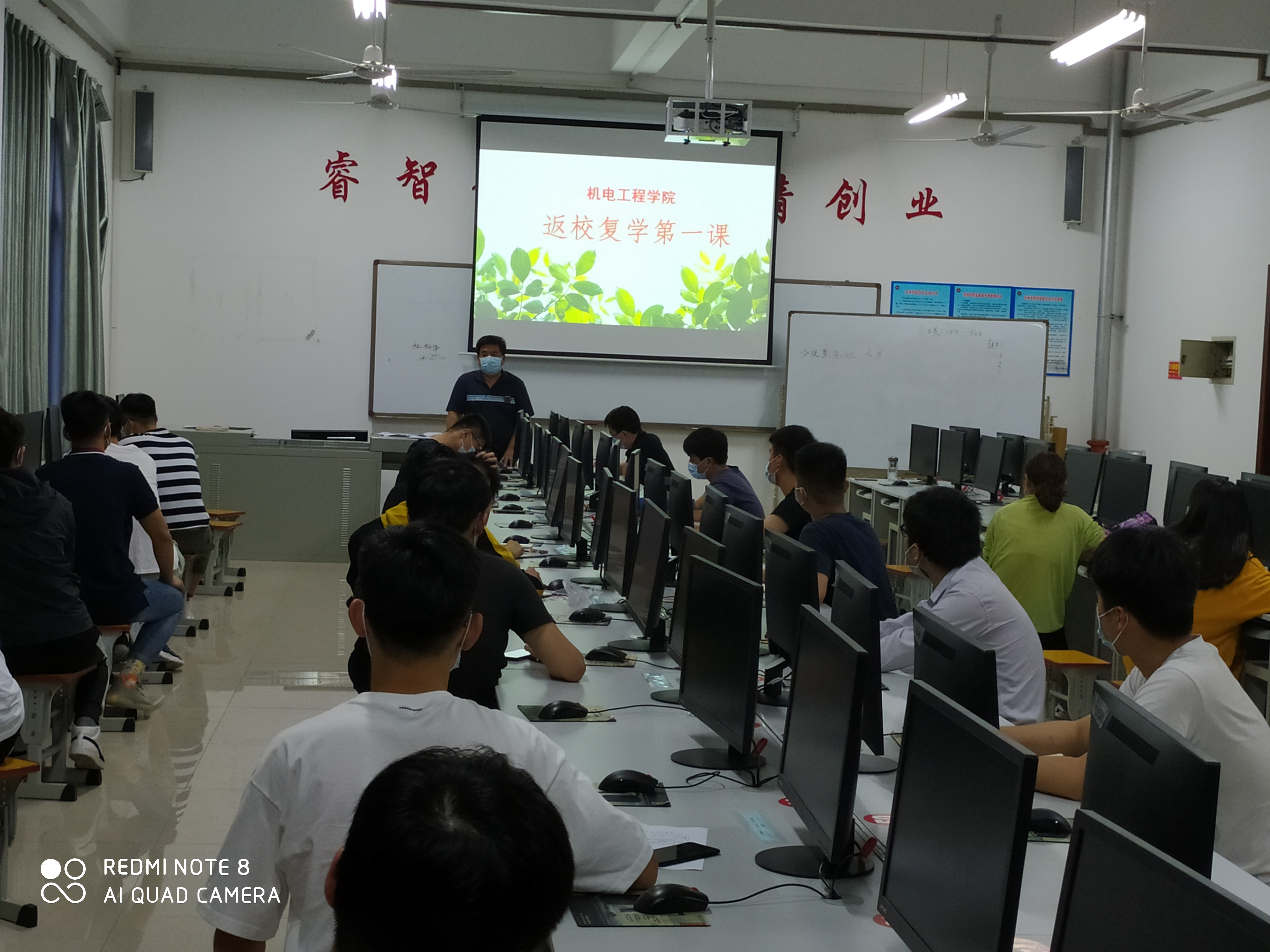 2020年5月25日,申慱sunbet娱乐迎来第二批返校复学毕业生,至此申请返校的毕业生已全部返校。阔别了近五个月的课堂后,晚上19:00在工程训练中心201,返校毕业生迎来了他们返校复学后的开学第一课。