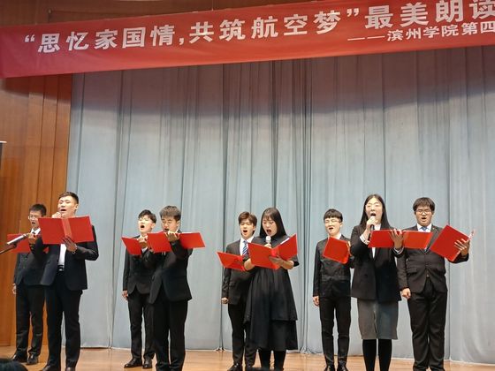 为了宣传学校航空特色办学成就、营造校园航空文化氛围、建设校园航空文化阵地,12月8日下午3点30分,学院于五百人礼堂参加滨州学院第四届航空文化节“思忆家国情,共筑航空梦”最美朗读者活动。此次活动由学院辅导员刘云龙、韩娇娇两位老师及王修博、高浩然等七名同学参加。