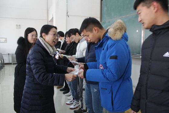 12月25日,在考研冲刺的最后阶段,学院党总支书记王丕琢、院长李宏伟带领辅导员为考研学子送去印有“锲而不舍、终将成功”字样的考试专用文具袋,其寓意为“袋”你上岸,一“研”为定,用这样特别的方式表达着学院师生对考研学子们的温情关怀。
