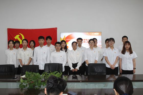 “我志愿加入中国共产党,拥护党的纲领,遵守党的章程,履行党员义务,执行党的决定,严守党的纪律,保守党的秘密,对党忠诚,积极工作,为共产主义奋斗终身,随时准备为党和人民牺牲一切,永不叛党”。6月15日下午五点,在工程训练中心316会议室,申慱sunbet娱乐学生党支部新发展的26名预备党员在鲜红的党旗下庄严宣誓,用铿锵有力的宣誓声立下对党的铮铮誓言,用隆重神圣的仪式感铭记入党的初心使命。
