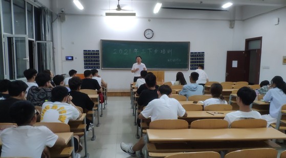 活动伊始,宋立军首先向同学们介绍了“三下乡”活动的含义及意义,并列举了往年的优秀三下乡案例,动员同学们积极准备。接着,2019年省级三下乡优秀学生获得者孙建国给志愿者做培训,他通过活动主题、总体思路、活动内容、活动安排、相关要求五个方面向同学们详细地讲解了三下乡活动的选题、策划、立项、答辩和具体实践的全过程。最后宋立军提醒同学们要尽早做好立项准备,要结合专业特色和优势,利用此次机会,在实践中受教育、长才干、做贡献,提高自己的认识,充分锻炼自己的能力,同时三下乡时注意做好个人安全防护,严格服从当地疫情防控要求。