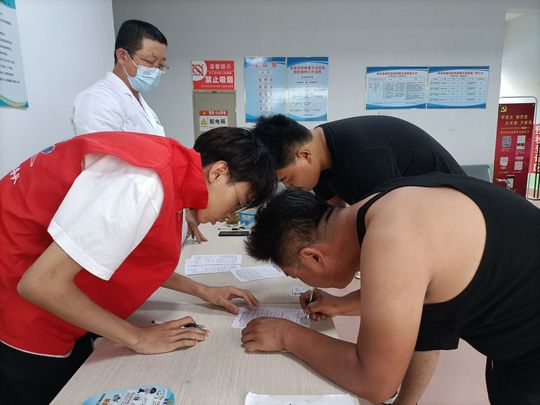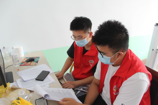 助力疫苗接种,志愿服务基层。昨天,申慱sunbet娱乐“美丽乡村,科教e站”志愿服务队在抵达阳信县金阳街道办事处后,了解到办事处当前在疫苗接种工作方面面临着空前的压力。在团队成员短暂的商讨之后,决定临时改变活动计划,团队成员先全体投入到办事处的疫苗接种工作中来。