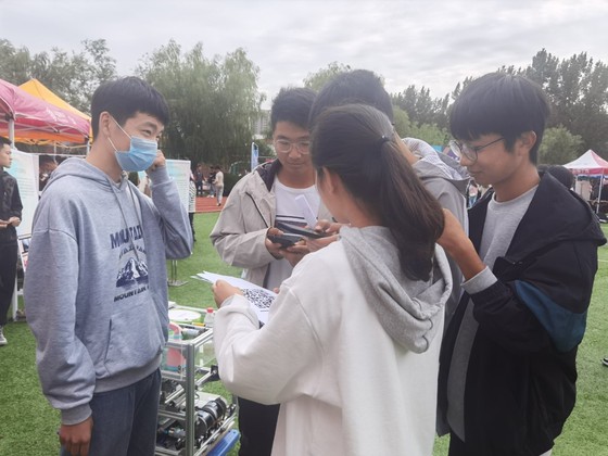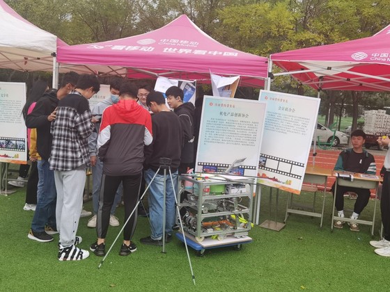 “百团大战”开战之前,各社团有序的布置场地,繁忙又有秩序的运作彰显出学生社团的生机与活力。百团大战期间,申慱sunbet娱乐的五个校级社团滨州学院爱创新通讯社、人工智能协会、机电产品创新协会、工程图协会、智能飞行器社团也积极招纳新生力量,通过形象的海报宣传,科技作品展览,社团负责人员现场介绍等丰富多样的形式,吸引了众多对科技创新、杂志设计、技术编程等感兴趣的新生。同学们在自己感兴趣的社团前询问,并就自己的疑问向社团相关负责人员提出相关问题,社团负责人都一一做出了详细的解答,听过耐心详细的答复后,同学们在报名表上填入自己的个人信息,并扫码加入对应的QQ群来等待下一步的见面会通知。招新现场氛围火热,热闹非凡,每个社团都使出浑身解数,吸引同学们的注意力。随着表演活动的结束,百团大战活动也渐渐落下帷幕。