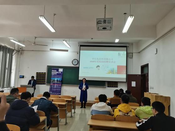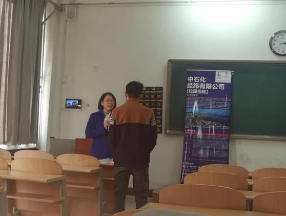 中石化经纬有限公司隶属于中国石油化工集团有限公司,是国有大一型企业,主营业务覆盖测井、射孔、技术贸易、定测录导技术服务总包以及技术研发、产品制造与销售、油藏研究等领域,是中国石化面向全球石油工程市场的技术服务商和定测录导业务统一窗口,定位为国家级高新技术企业。招聘会开始前工作人员先向同学们播放了公司的宣传片。之后,工作人员又借助幻灯片,向同学们介绍了关于公司的一些规章制度、福利待遇、企业文化等。使同学们对公司有了直观了解。随后,便进入现场答疑环节,现场互动频繁,气氛热烈。会议最后,招聘方向同学们介绍了公司今年的招聘岗位和应聘要求,并真诚地希望同学们能够来到企业工作,此次招聘会圆满结束。