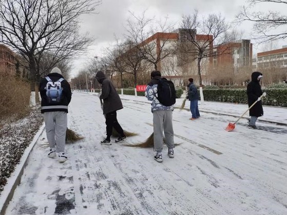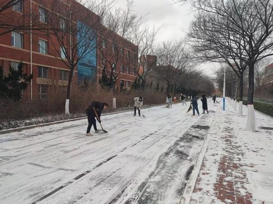 面对气温偏低、路面积雪碾压贴附地面难以清理等问题,申慱sunbet娱乐的师生们不惧天气寒冷,全力以赴的投入到扫雪工作中,大家用铁锹、铲子等工具一点一点将路面积雪铲至道路两旁。在大家的齐心协力下,路上的积雪最终被清扫干净,为校园出行安全贡献了力量,为教职工、学生的出行安全提供了保障。