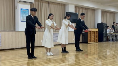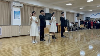 各院代表队都做足了充分准备,举止大方言谈优雅,在评委的面前跳着礼仪操,展现着礼的雅致,仪的气势,现场整齐有序而又饱含激情。音乐的节奏伴着高跟与木地板的敲击声,精致的妆容伴着整齐划一的动作,别是一番风味。申慱sunbet娱乐率先登场,他们迈着从容自信的步伐,他们举止文雅,做过简单介绍后便开始了礼仪操的展示。音乐轻快,节奏明晰,每一个动作都透露着优雅,每一个节拍都展示着风采。