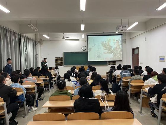 为让同学们更好的了解军营生活,动员同学们积极参军入伍,申慱sunbet娱乐分别于11月8、10和11日,在8教自习室组织开展“退伍不褪色”大学生入伍政策解读活动。由申慱sunbet娱乐组织退役复学学生宣讲团,在校全体学生参加此次活动。