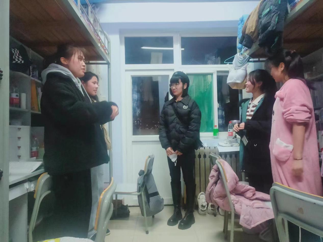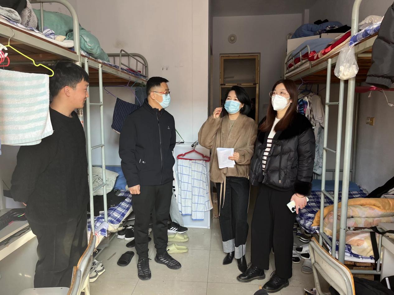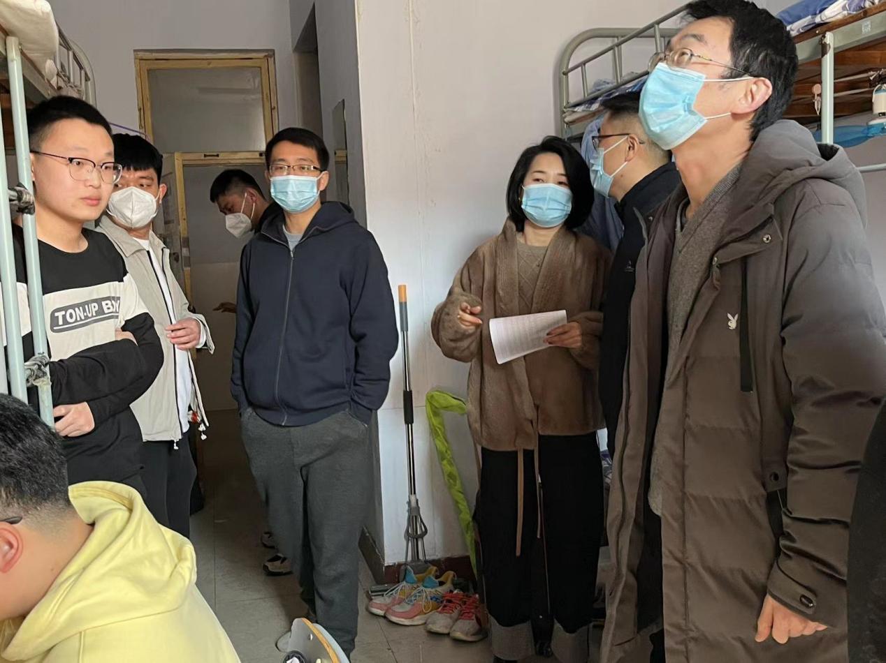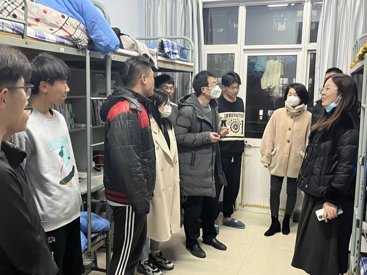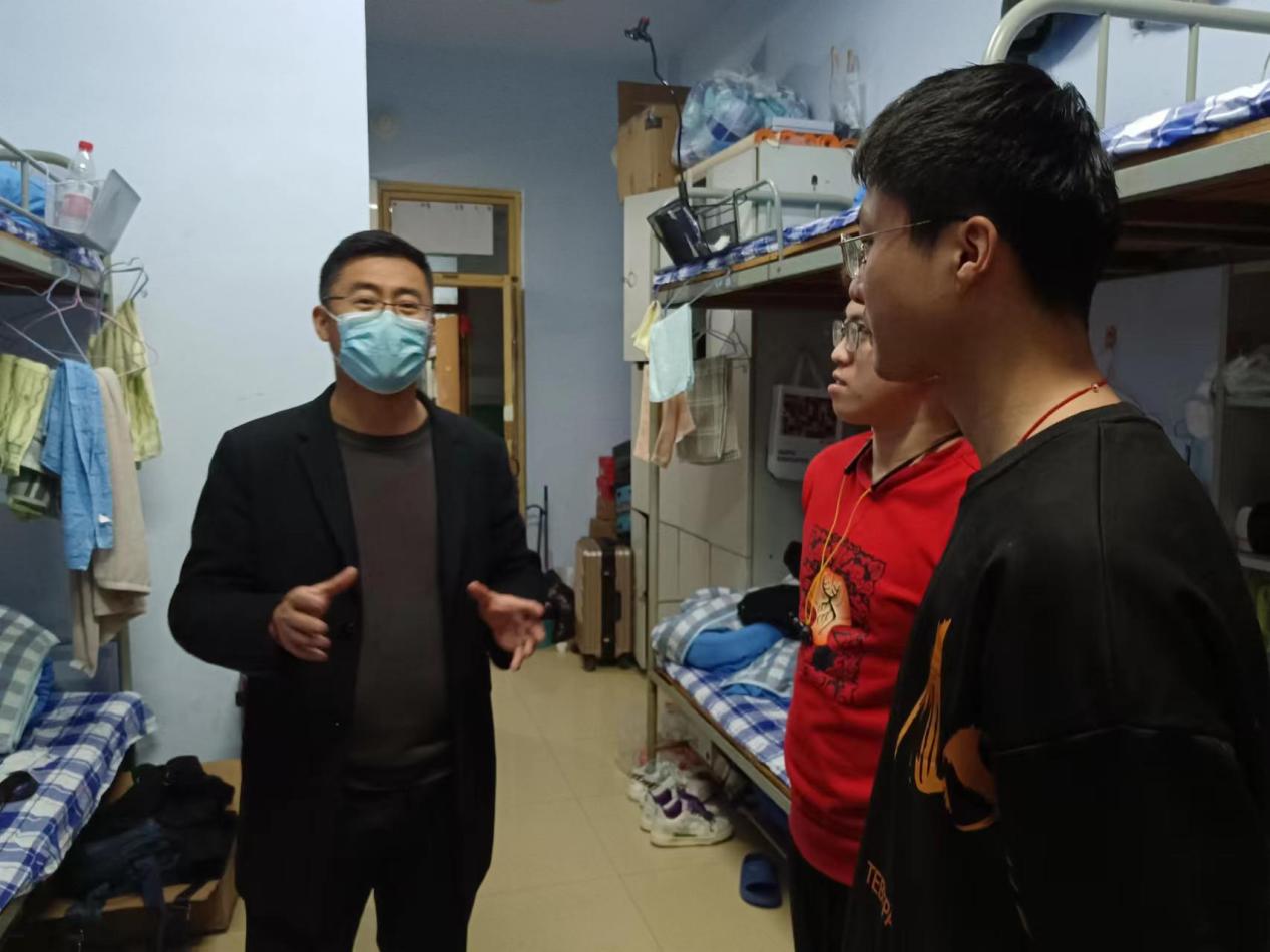 开学初,申慱sunbet娱乐党总支副书记王春磊、副院长李辉带领全体辅导员、班主任深入学生公寓查看网课情况排查安全隐患并与学生亲切交流。